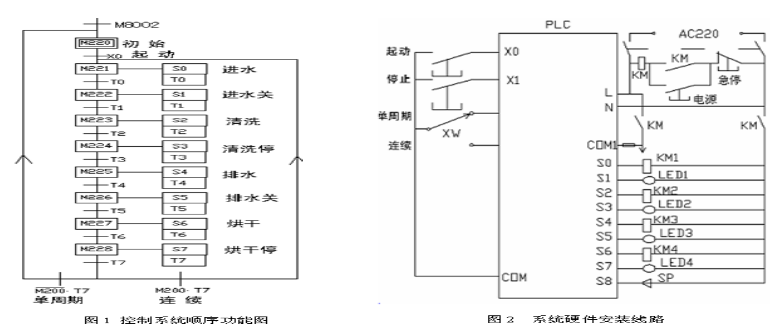 由系統工作循環設計出系統順序功能圖,其中 M8002為初始化脈沖,使系統進入初始步。M220 為初始步,X0是清洗器的起動開關,由于清洗器為全自動清洗,當按下